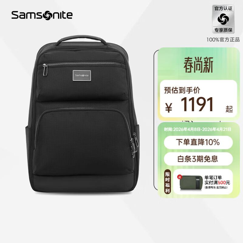 新秀丽(Samsonite)双肩包时尚舒适背包书包大容量商务旅行电脑包男士通勤 NU4*09005 2年质保