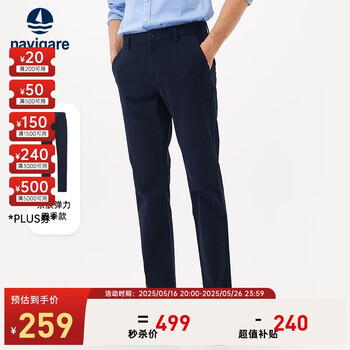 Navigare意大利小帆船休闲裤男士春季轻商务舒适直筒裤弹力通勤男装长裤子 藏青 码 32