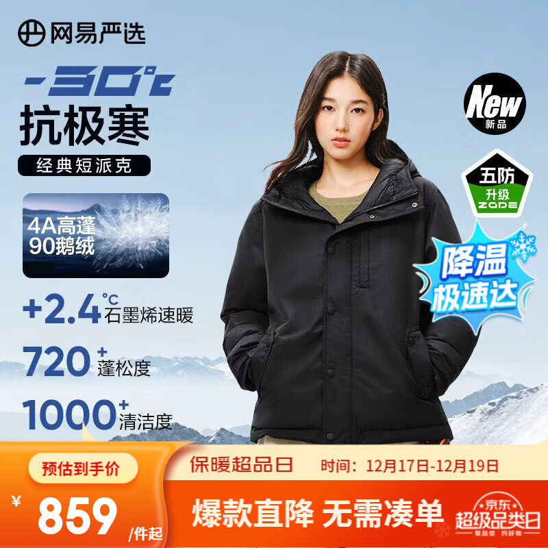 网易严选中国大鹅x燕云联名款地表强温90白鹅绒短款派克羽绒服-30℃抗寒 A款25秋冬-润泽黑 L