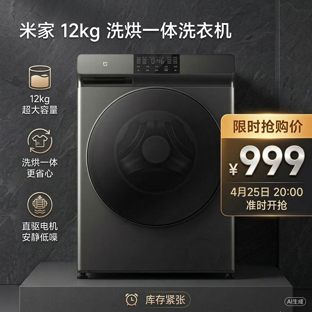 米家【清仓下市】小米12KG洗烘一体滚筒洗衣机超大容量 全自动节能一级能效以旧换新XHQG120MJ202
