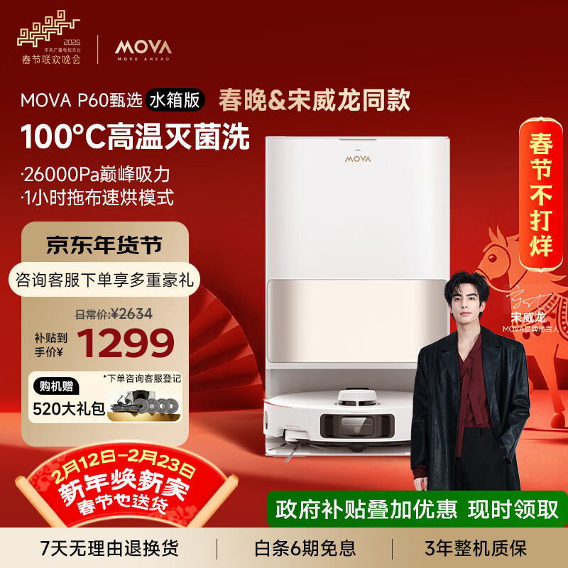 Mova【春晚&宋威龙同款】P60甄选扫地机器人扫拖一体自动清洗家用智能烘干拖布扫地机洗拖一体水箱版