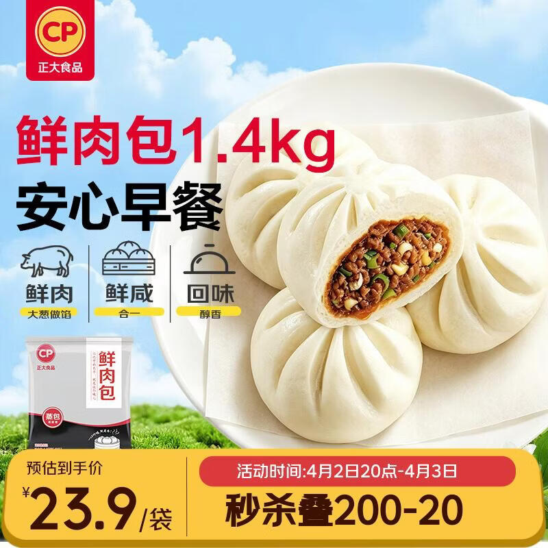 正大食品鲜肉包1400g 40只 小笼包包子馒头方便菜儿童早餐优选 开学季速冻