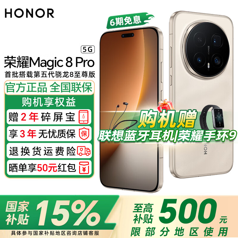 荣耀Magic8 Pro【政府补贴】5G手机 YOYO智能体 超夜神长焦 第五代骁龙8至尊版 新一代青海湖电池 旭日金砂 16GB+512GB 官方标配