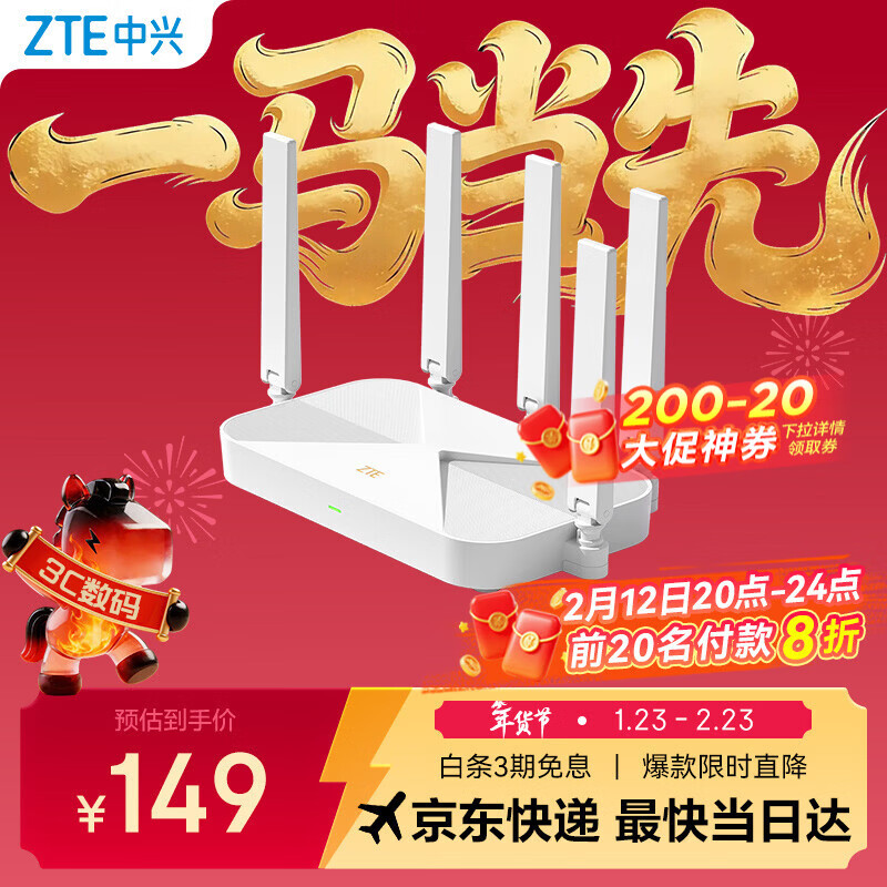 中兴(ZTE)巡天 AX3000满血WIFI6千兆无线家用路由器 自研双核主芯片 5G双频穿墙王wifi路由 Mesh 3000M速率