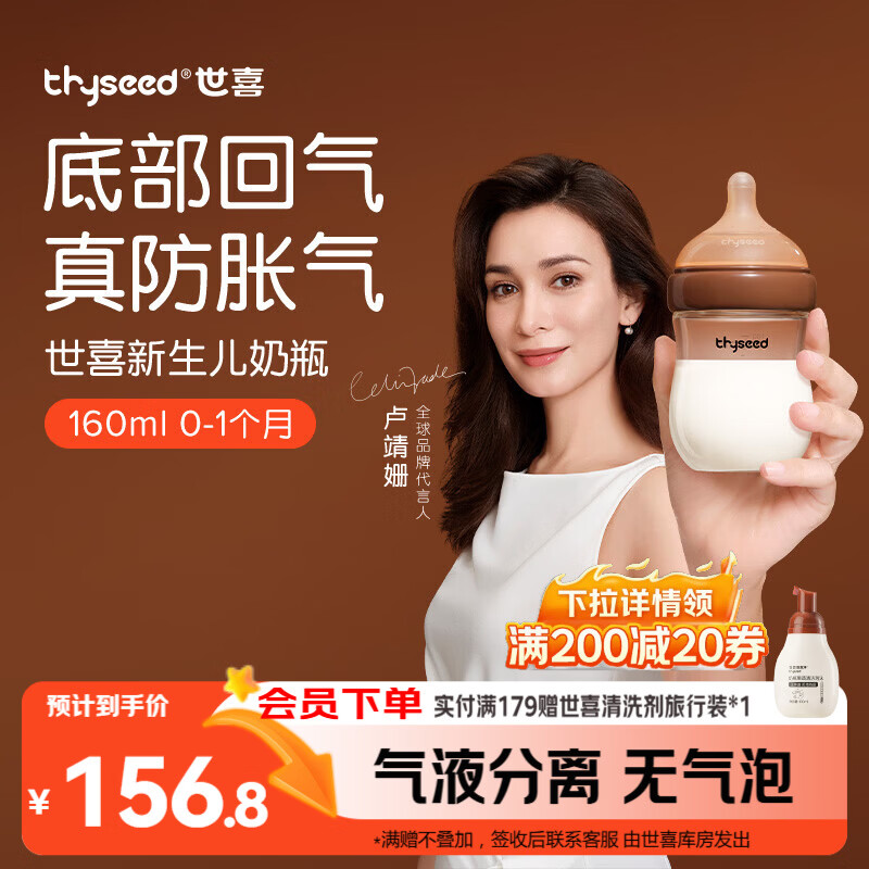 世喜奶瓶新生儿0-1个月防胀气玻璃婴儿仿母乳奶嘴160ml