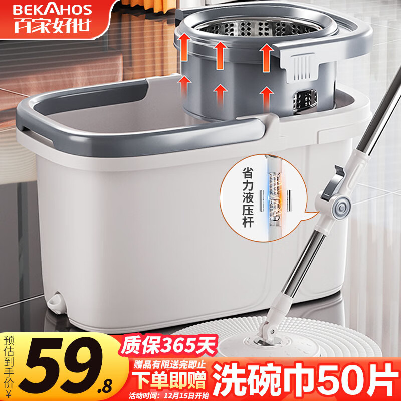百家好世旋转拖把32cm拖布127cm杆长2棉头家用一拖净免手洗2025款甩干桶