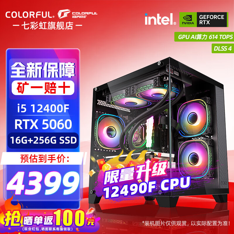 七彩虹(Colorful)海景房主机酷睿15代U5 245KF/i5 12490F搭RTX5060 5060TI电竞游戏设计办公电脑主机台式组装机 配四:12490F丨16G丨5060