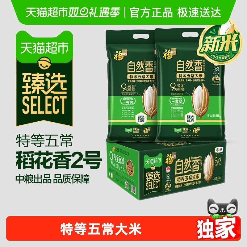 【臻选】2025年新米上市 福临门自然香特等五常大米5kg*2袋整箱装