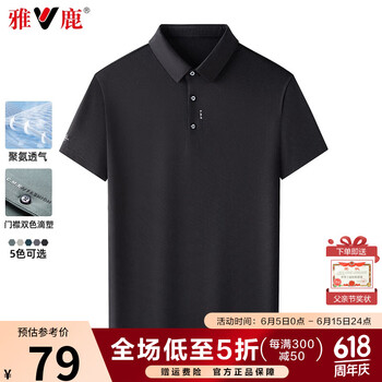 雅鹿冰丝短袖T恤男夏季新款休闲polo体恤衫父亲节礼物实用爸爸装衣服 黑色 175【125斤-140斤】