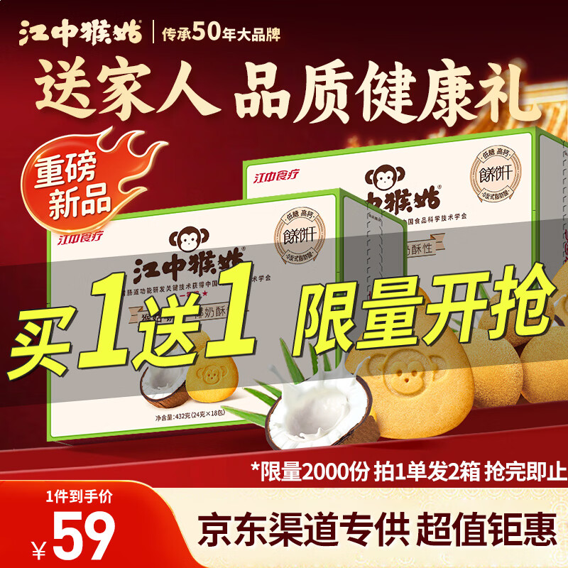 江中猴姑椰奶猴头菇饼干养胃低糖高钙早餐儿童营养孕妇休闲零食432g