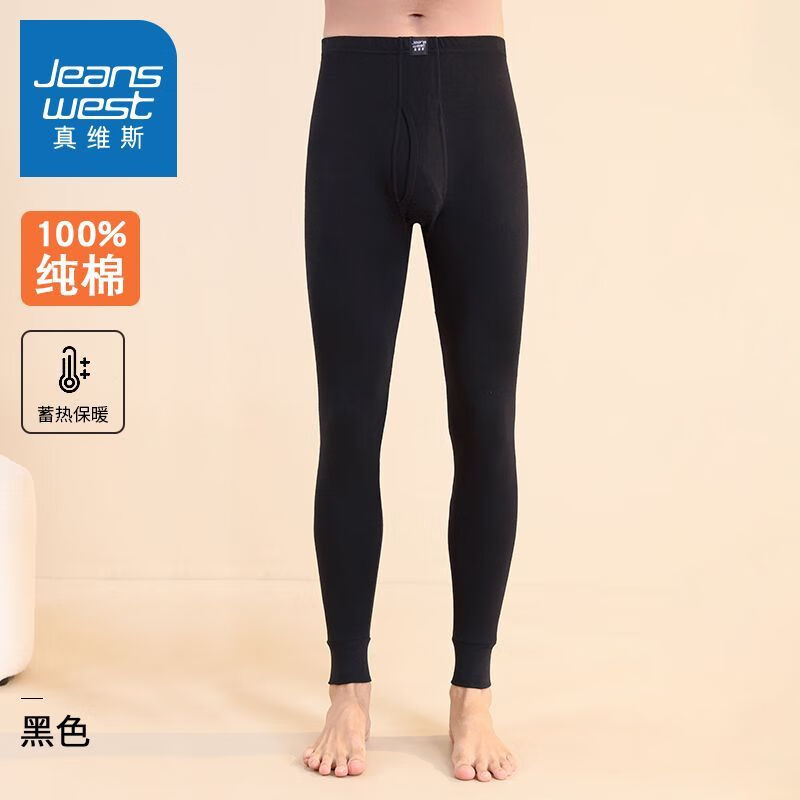 真维斯Jeanswest/秋裤男士打底衬衫衣衬裤100%棉保暖内衣秋冬季 【100%保暖】黑色 4XL 180-200斤