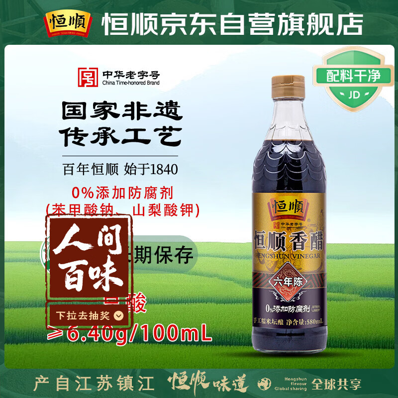 恒顺 六年陈 镇江香醋 6.4度580ml【手工】 糯米调味厨房