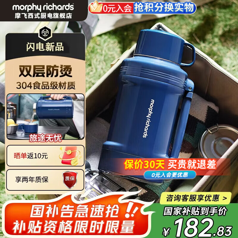 摩飞电器电热水壶便携式烧水壶烧水杯旅行热水壶不锈钢大容量水壶户外露营 1L 轻奢蓝
