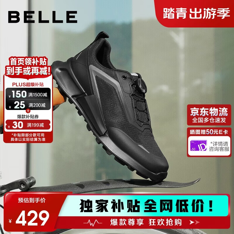 百丽网面透气健步鞋男26夏新款增高5.5cm运动鞋A1960BM6 黑色 41