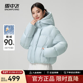 雪中飞新款【鹅绒】时尚经典短款泡芙鹅绒羽绒服侧插袋防寒加厚 浅蓝色|5258 160/84A