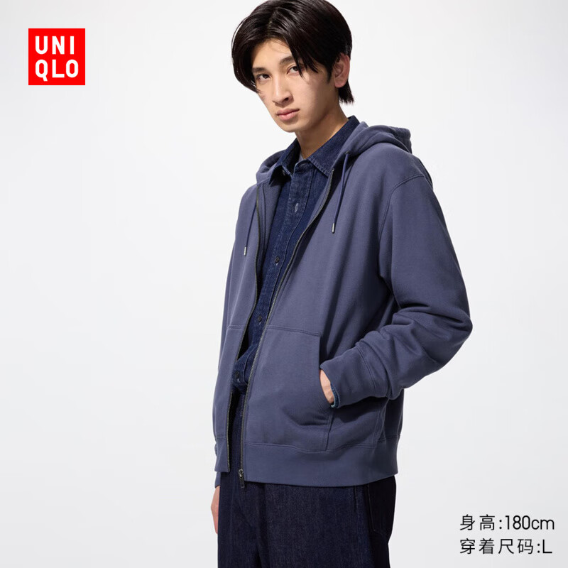 优衣库男装女装连帽拉链运动开衫长袖外套休闲卫衣479800 475380 479800/67海蓝色 XL