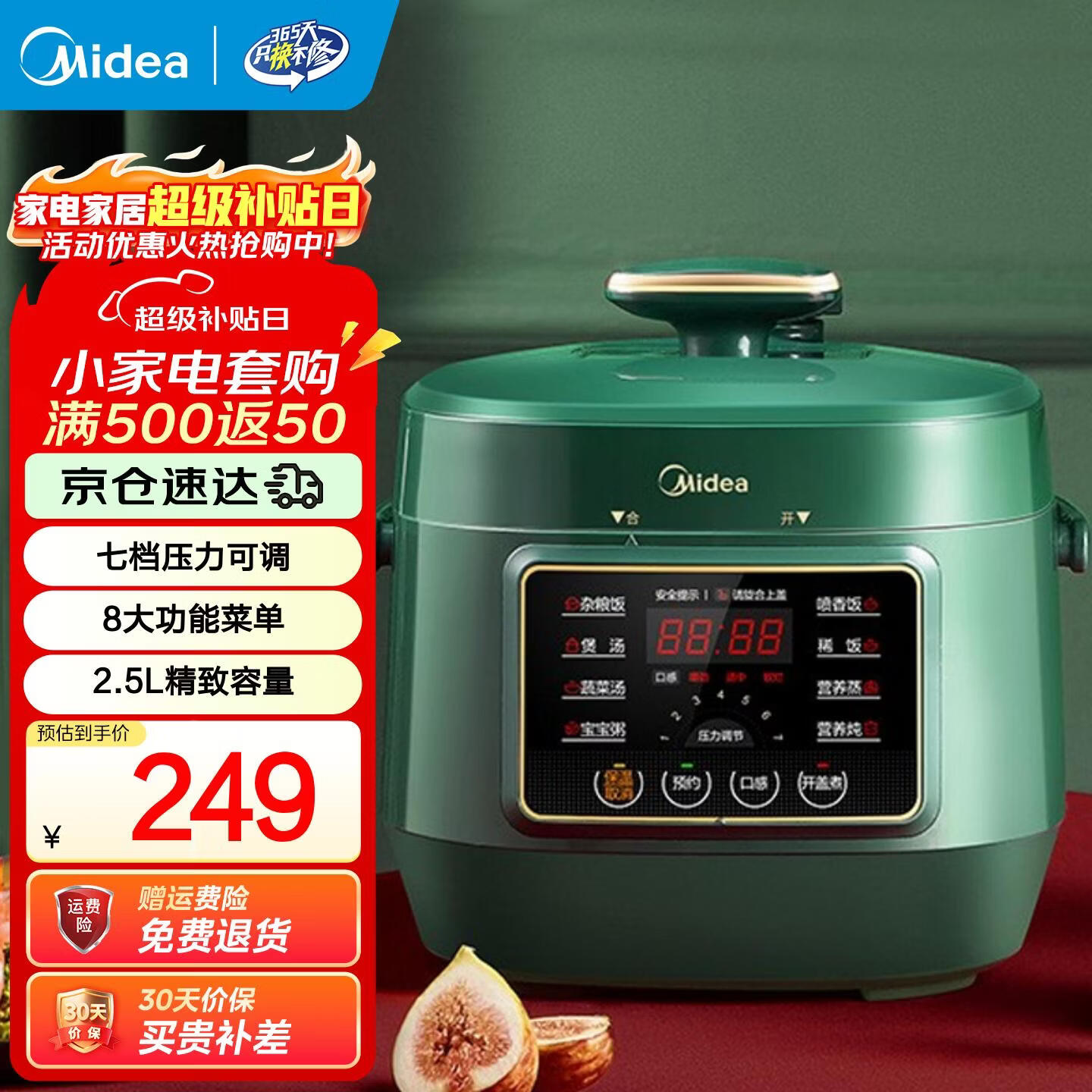 美的(Midea)电压力锅智能高压锅2.5L 家用多功能不粘内胆高压快煮智能预约小高压锅 (1-3人食用) 复古绿|MY-S340 2.5L