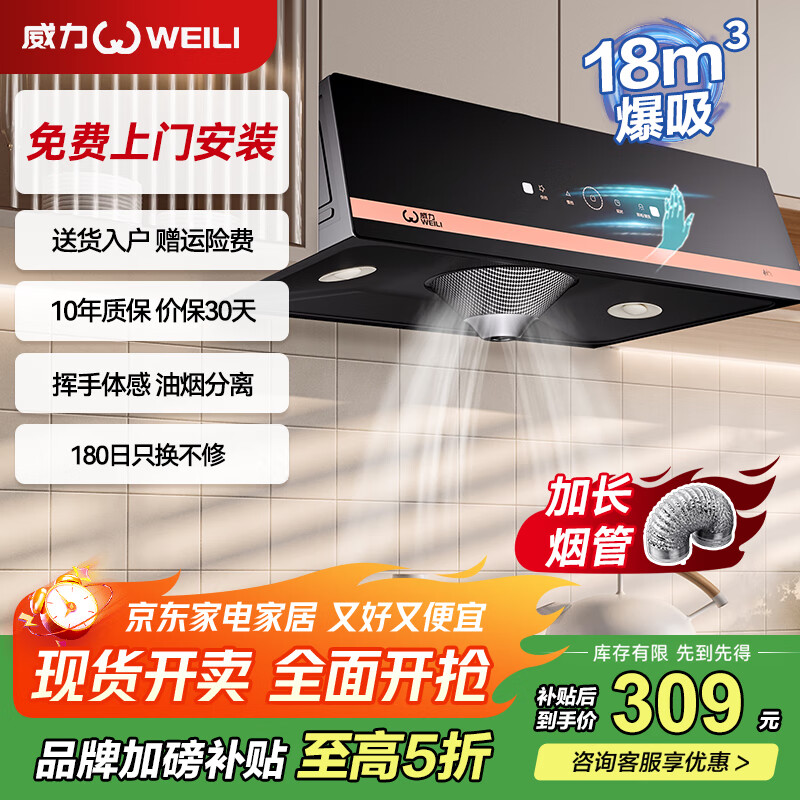 威力中式油烟机灶具套装 20立方大吸力爆炒家用厨房抽油烟机燃气灶 小尺寸脱排老式出租屋公寓烟灶套装 【高配款】锥网体感自清洗+18m爆炒+免费安装 以旧换新+品牌补贴+全国联保