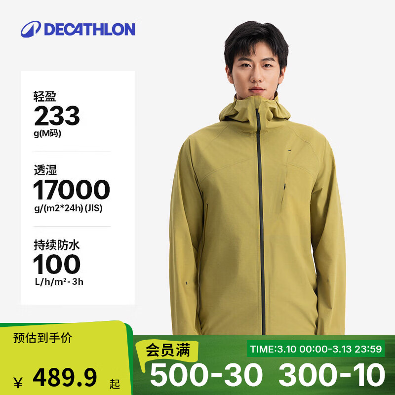 迪卡侬硬壳冲锋衣男女户外休闲登山徒步防风防水夹克风衣MH500外套 迷踪绿-男女同款-轻量版2025年新 加内胆选大一码 L