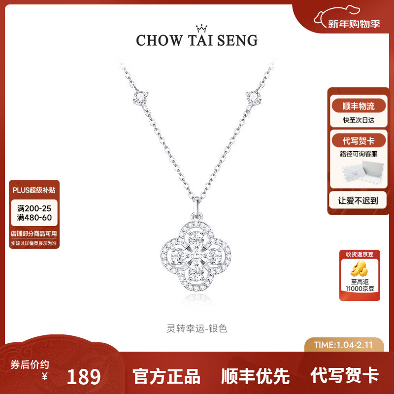 周大生【新年礼物】四叶草项链纯银女轻奢百搭高级锁骨链生日礼物送女生 银白色