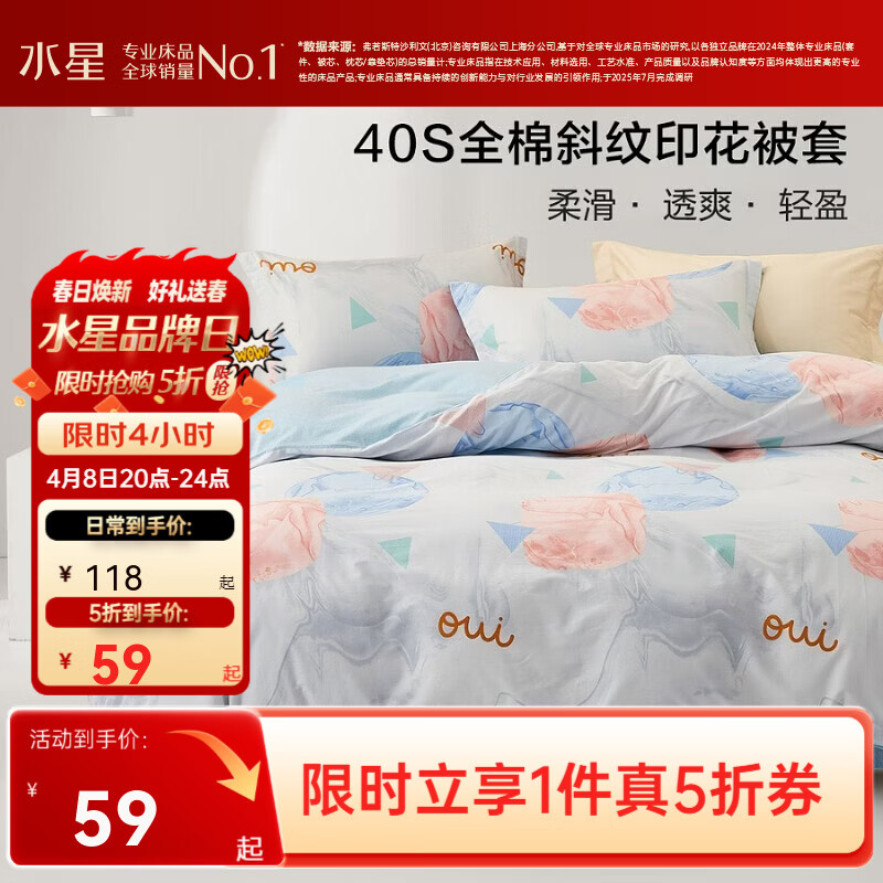 水星家纺集团出品 百丽丝被套单件 100%全棉被套 学生纯棉被罩被套 (100%全棉&北欧简约系列) 兰达 150cm*210cm