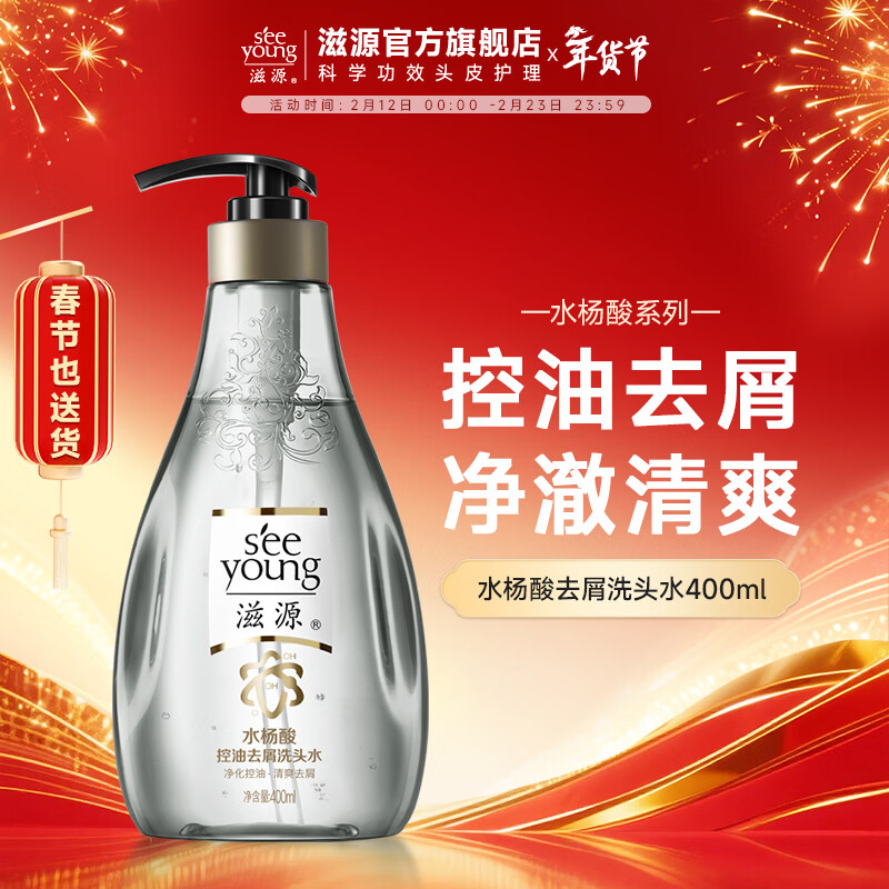 滋源洗发水露男女士无硅油控油去屑柔顺精油修护洗头膏 水杨酸控油去屑洗发水 400ml*1瓶