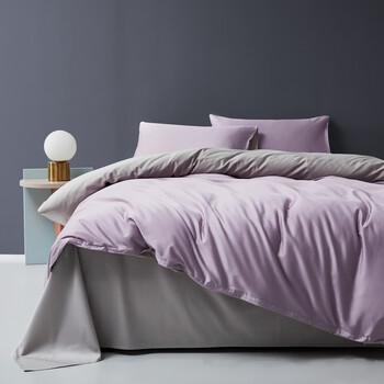 AIDLI 60支贡缎316根全棉四件套 高支高密纯色双人四件套 黛紫+皓月灰 200*230cm(1.5/1.8m)床单款