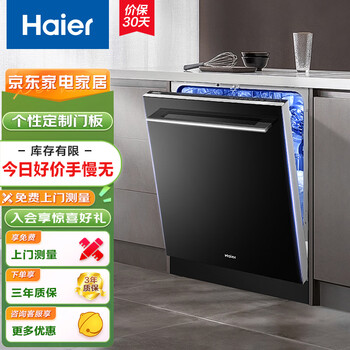 海尔(Haier)洗碗机13套嵌入式80℃双微蒸汽智能开门速干自定义面板全自动洗碗机(含黑色门板) EYW13029D