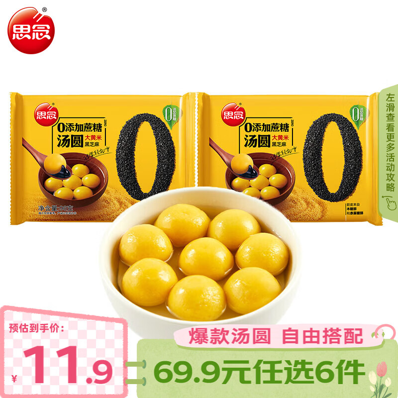 思念小柿也如意汤圆元宵汤圆蛋仔派对汤圆黑芝麻汤圆速冻早餐点心元宵 零蔗糖大黄米黑芝麻汤圆96g*2袋