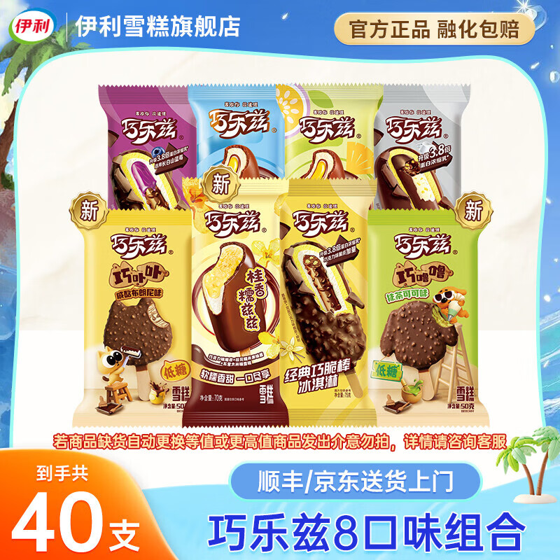 伊利冰淇淋巧乐兹纯享【新品】巧脆棒桂香糯兹兹四个圈雪糕冰淇淋 共40支(2680g)