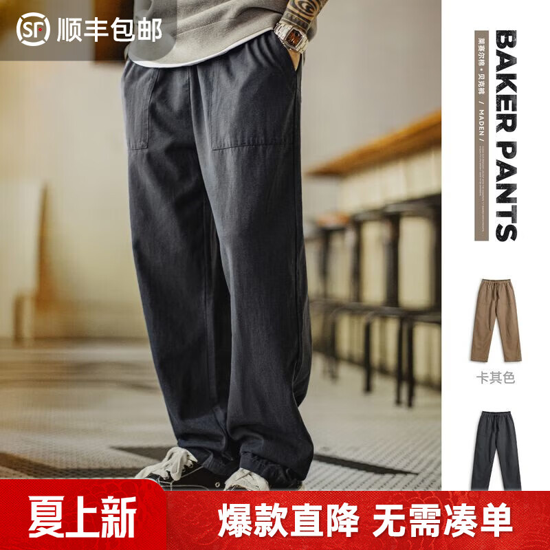 马登工装美式复古莱赛尔棉天丝贝克裤男士休闲裤春季新款直筒长裤子男 藏青色 M