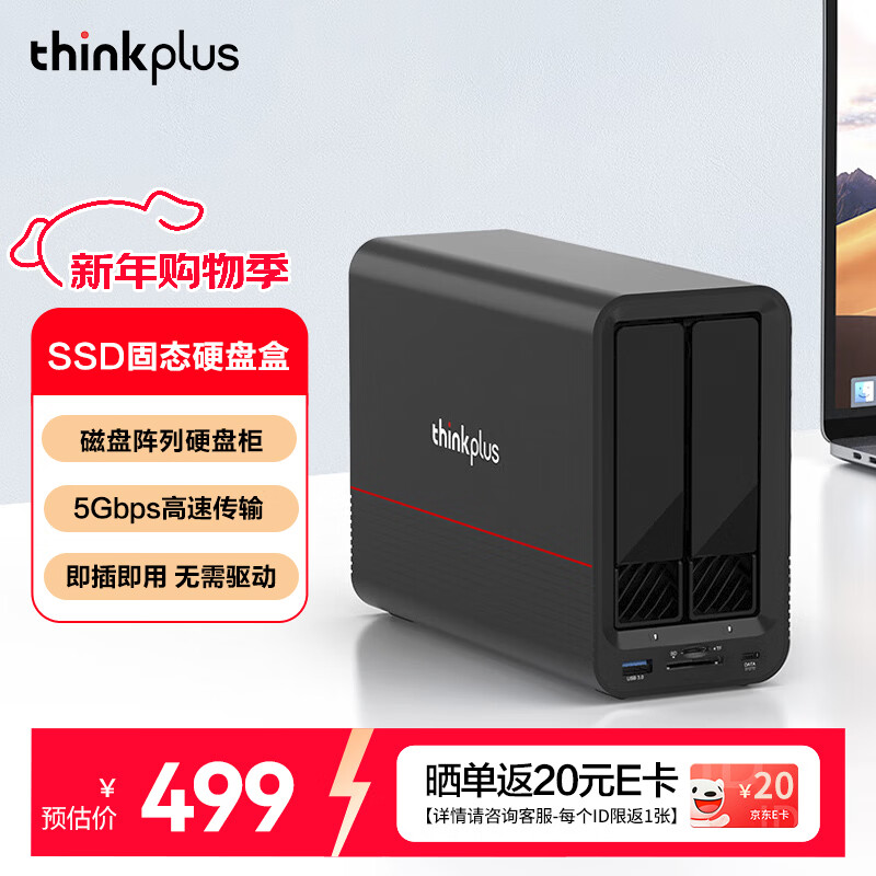ThinkPlus联想 硬盘柜硬盘盒双盘位 适用Macmini/NAS扩展存储 2.5/3.5 SATA串口机械固态硬盘盒