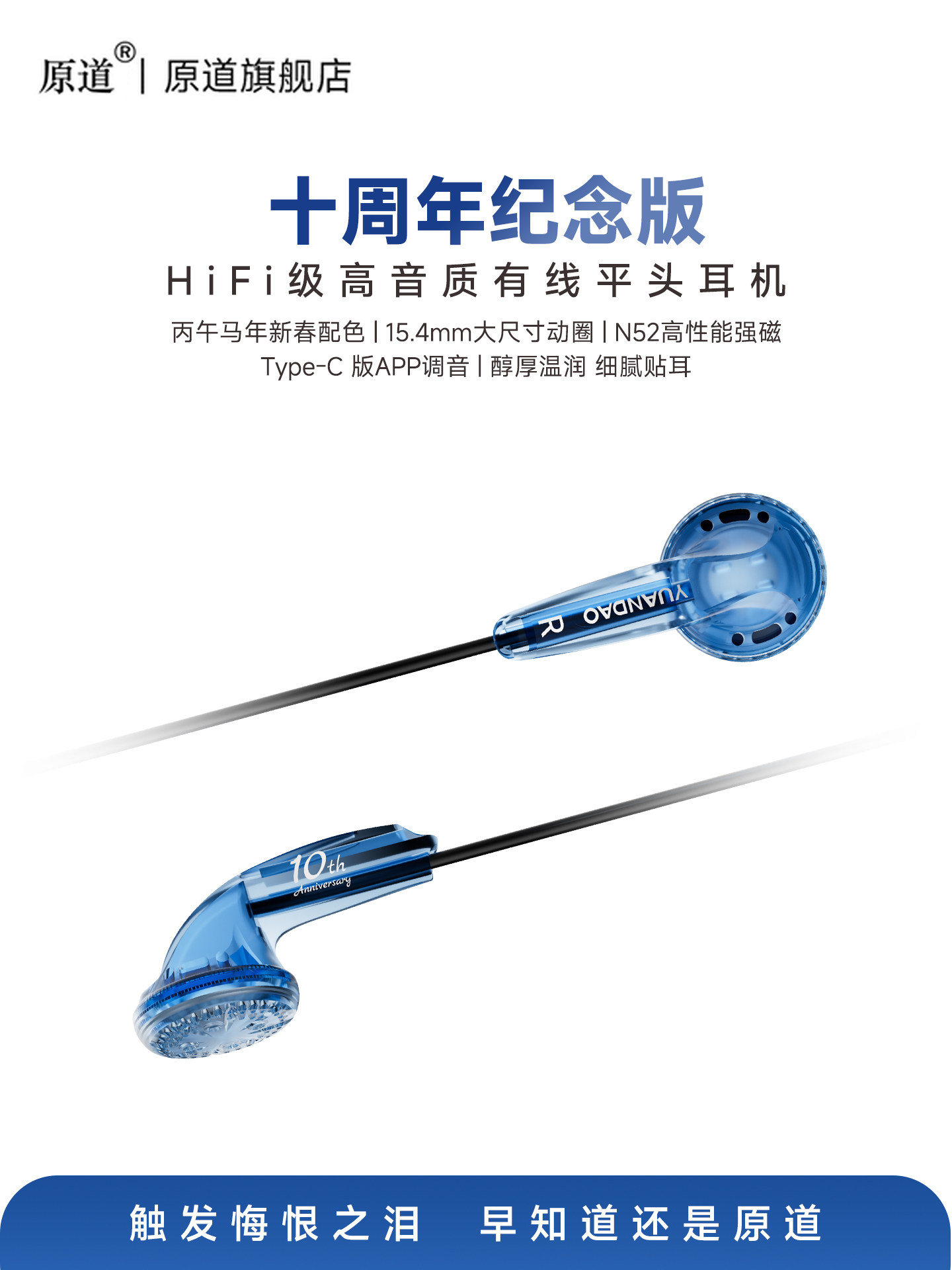 原道十周年纪念版平头塞HiFi高音质电脑游戏音乐有线控带麦耳机