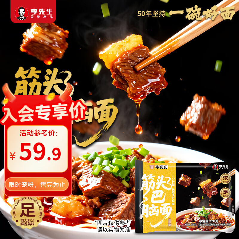 李先生(mrlee)筋头巴脑面320g*5袋装速食方便食品早餐煮面方便面半干面+汤料包