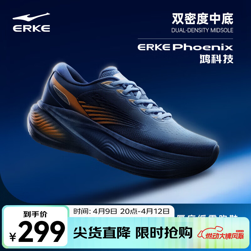 鸿星尔克揽途大体重男跑步鞋2026春季新款缓震通勤运动鞋软底跑鞋支撑男鞋 【破晓】花青蓝/杏橙色 -男 42