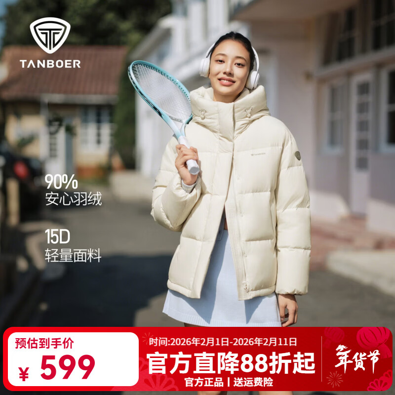 坦博尔羽绒服女短款2025冬季新款时尚舒适简约纯色百搭保暖外套 知春米 M