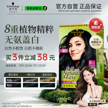 施华蔻(Schwarzkopf)怡然染发霜2.0/9闪亮珍珠黑 染发剂植物染发膏黑色一洗黑男女盖白