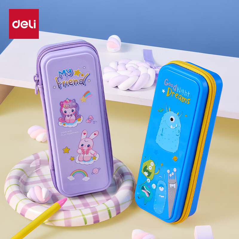 得力(deli)卡通PP学生笔袋 可爱高颜值笔盒 轻量便携大容量收纳文具盒 紫BC443