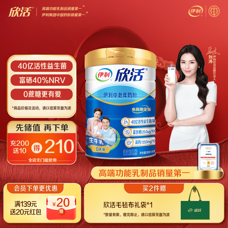 伊利欣活中老年富硒益生菌高钙无蔗糖营养粉老年人滋补送礼送长辈800g