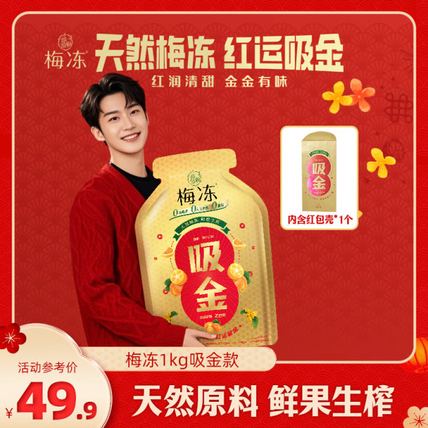 溜溜梅1kg/1.5kg梅冻红运吸金果冻休闲解馋限定送礼零食大礼包 1kg梅冻吸金显眼包(金包壳)