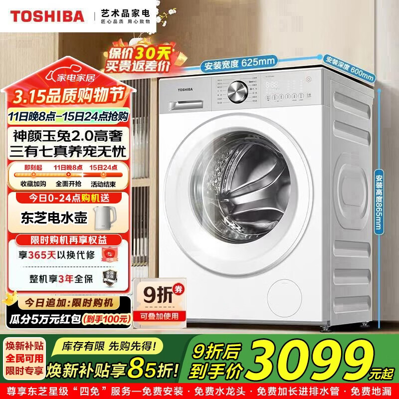 东芝(TOSHIBA)玉兔2.0高奢版滚筒洗衣机全自动家用 10KG大容量 AI智能投放 健康除菌螨 专业除毛 滚筒 10kg DG-10T183BW
