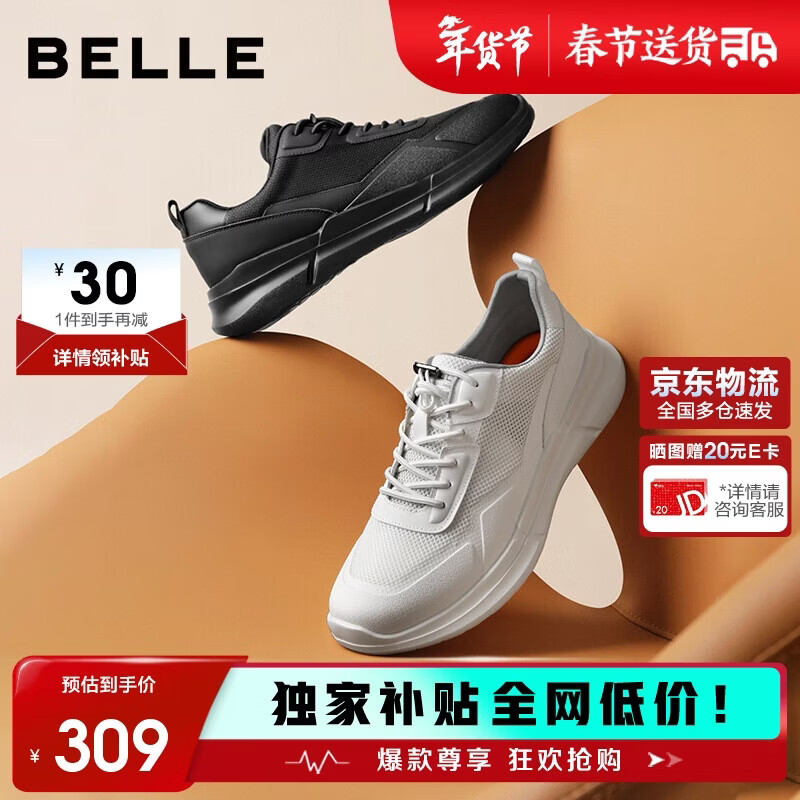 百丽厚底秋季轻便健步鞋男户外增高休闲运动鞋A1980BM5 云峰白 40