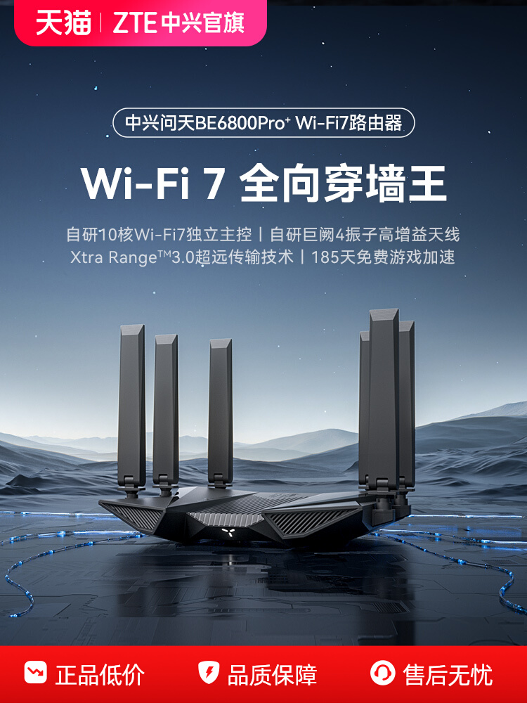 ZTE中兴问天路由器BE6800Pro+双2.5G网口WiFi7千兆双频路由器全屋大户型子母路由高速穿墙游戏电竞mesh组网