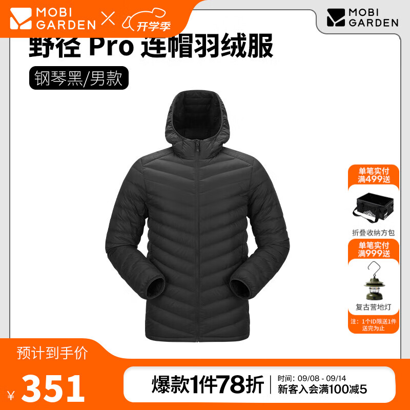 牧高笛冷山野径连帽羽绒服 户外徒步羽绒服男女款轻薄保暖防风情侣鸭绒外套 男/钢琴黑 XL