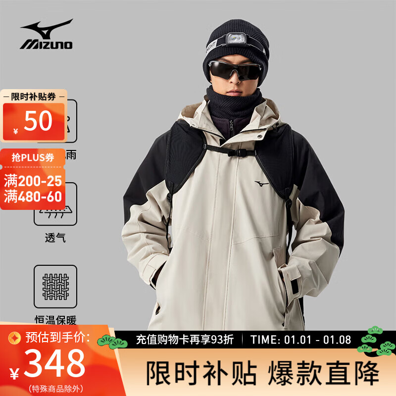 美津浓(MIZUNO)25年新款秋冬三合一梭织夹克男女防水防风保暖外套 02/沙月杏 S (165)