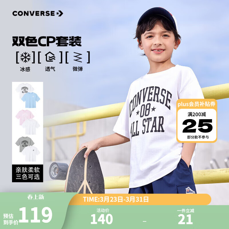 匡威(Converse)【2件装】匡威儿童T恤男童短袖儿童半袖纯棉休闲圆领t恤儿童上衣 天空蓝+白色 150 /72 【建议身高140-152cm】