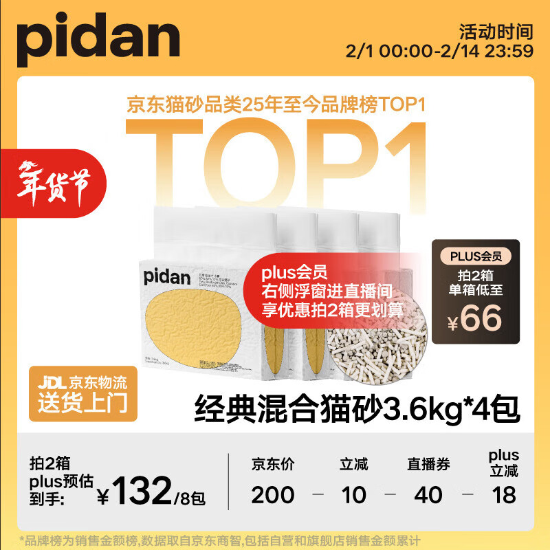 pidan混合猫砂 豆腐膨润土木薯60%:30%:10%混合3.6kg*4包