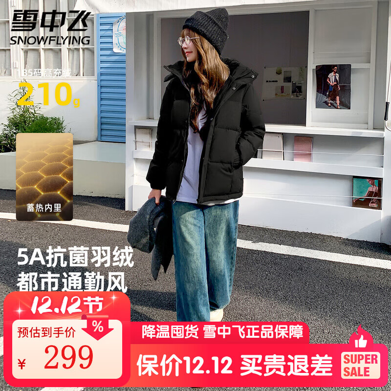 雪中飞羽绒服冬季女装纯色简约高级感高级百搭发热蓄热透气网布羽绒外套 黑色(男女同款) XL (175)