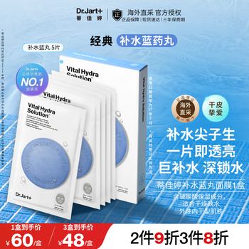 蒂佳婷(Dr.Jart)补水面膜蓝药丸活力水润面膜5片玻尿酸高保湿深锁水韩国原装进口
