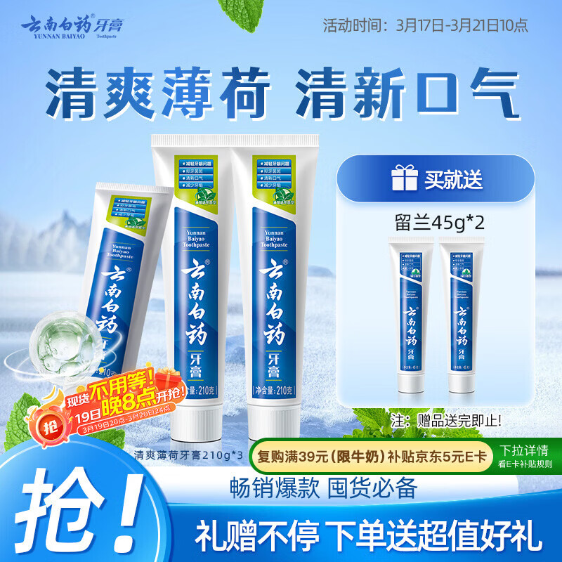 云南白药【采销推荐】经典薄荷护龈牙膏囤货装清新口气改善牙龈问题210g*3